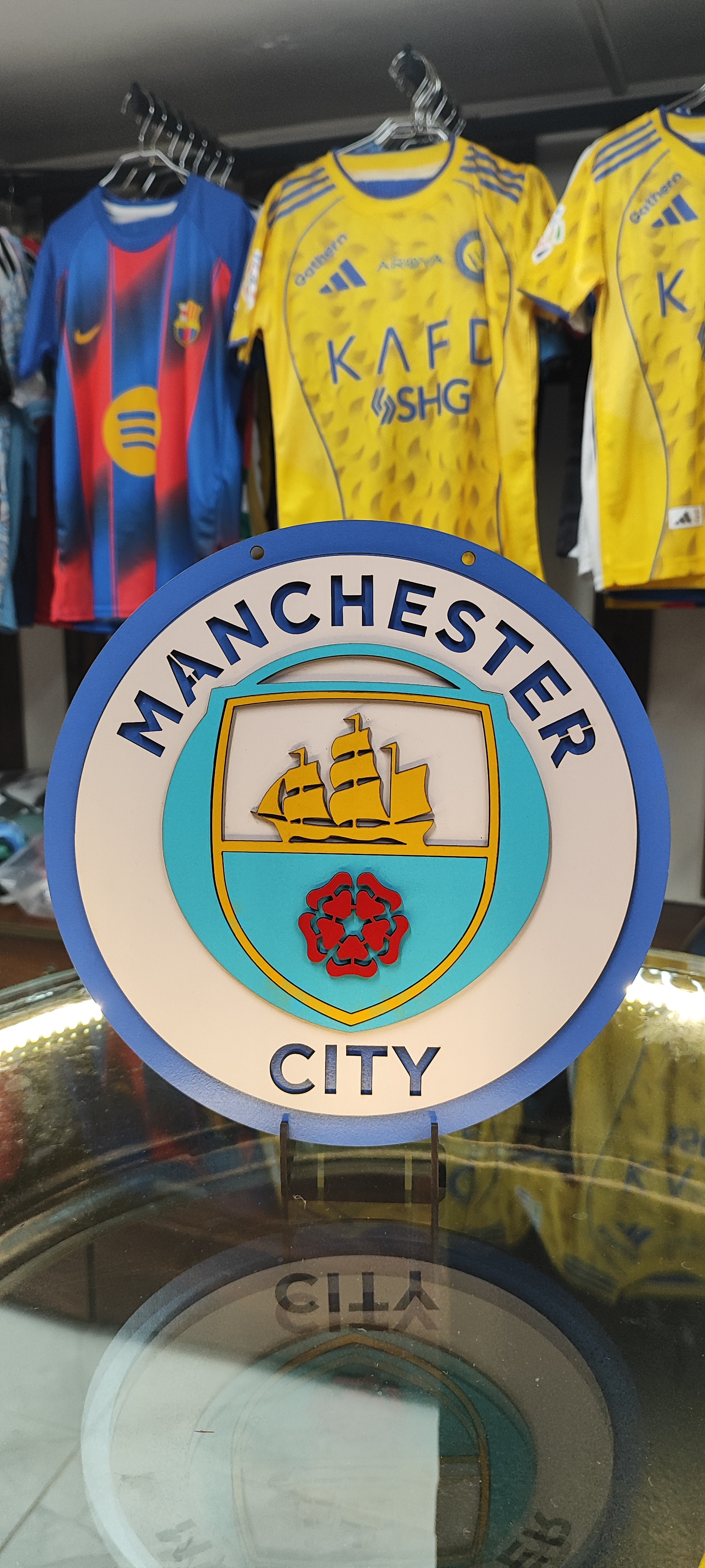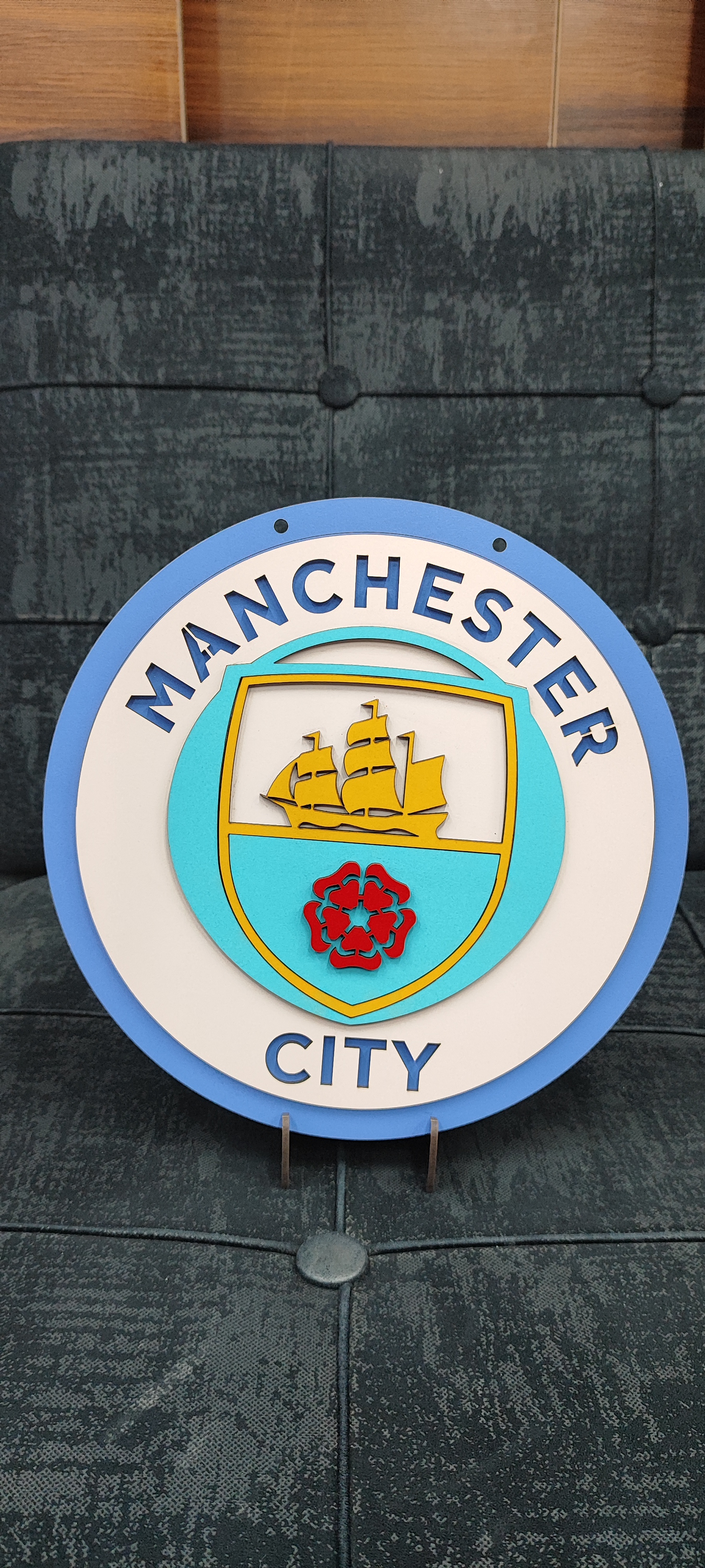 تابلو سهبعدی لوگوی باشگاه منچسترسیتی، انتخابی عالی برای هواداران وفادار باشگاه منچسترسیتی میباشد.